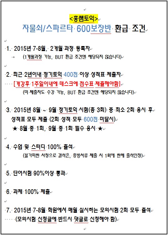 600보장반 환급조건은 위와 같으며, 데스크로 전화주시면 자세하게 안내해 드립니다^^