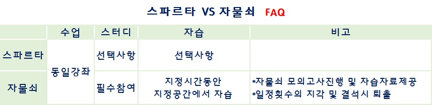 스파르타와 자물쇠반은 주5회로 진행되는 동일한 수업을 듣게됩니다.