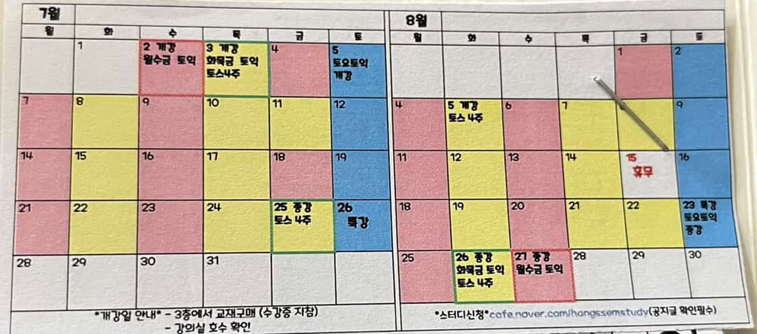 사진처럼 전체적인 수업 일정을 알고 싶습니다.