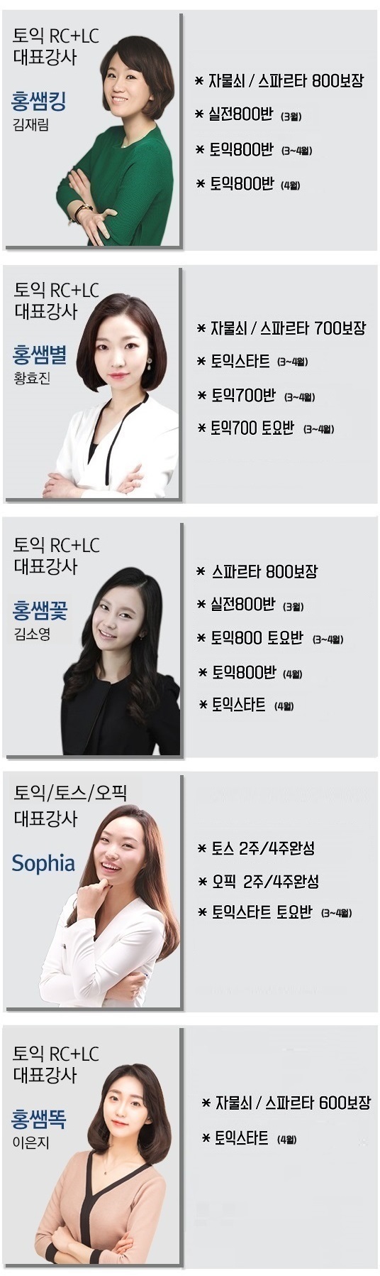 강사별 과목 안내