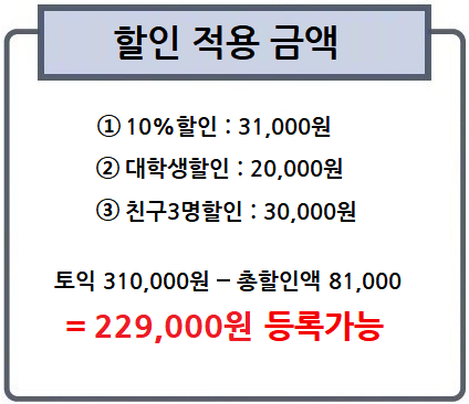 나. 친구 3인, 동시 등록시, 각각 3만원 할인