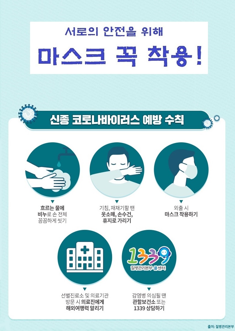 방역소독 실시중 + 마스크착용 필수