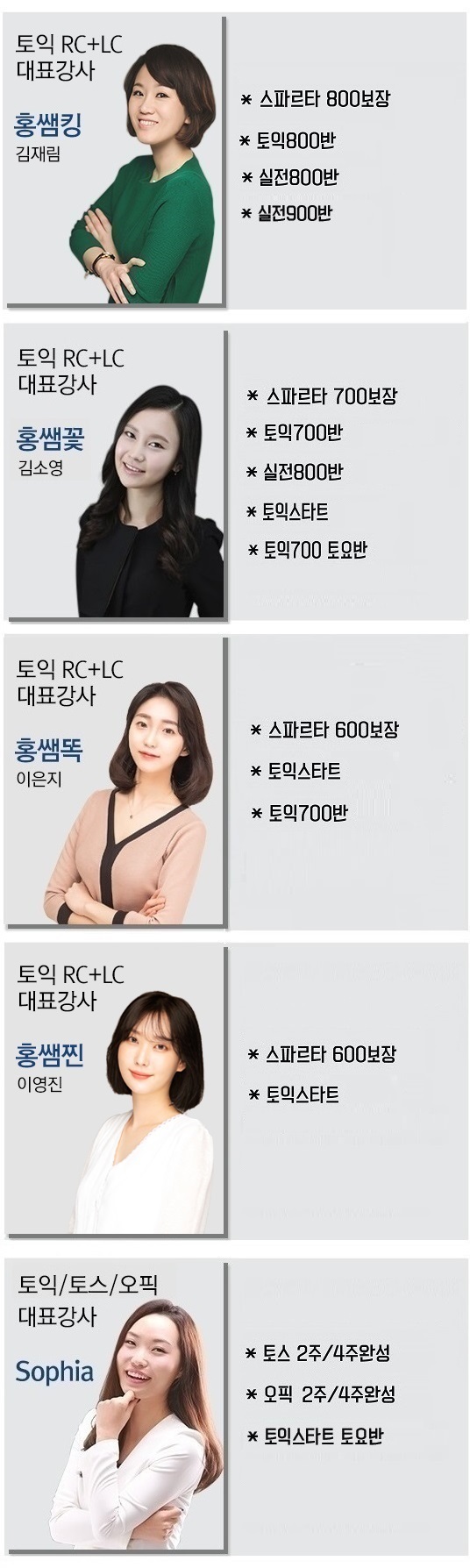 강사별 과목 안내