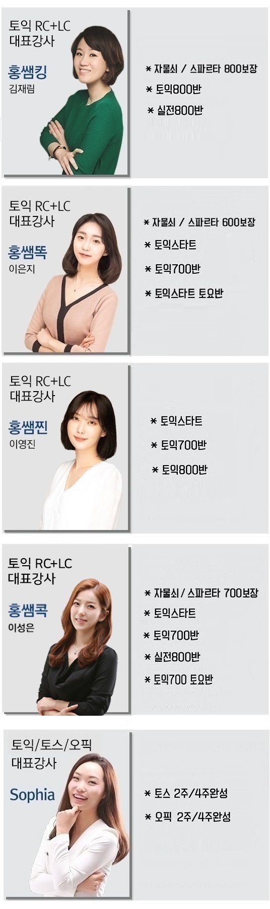 강사별 과목 안내