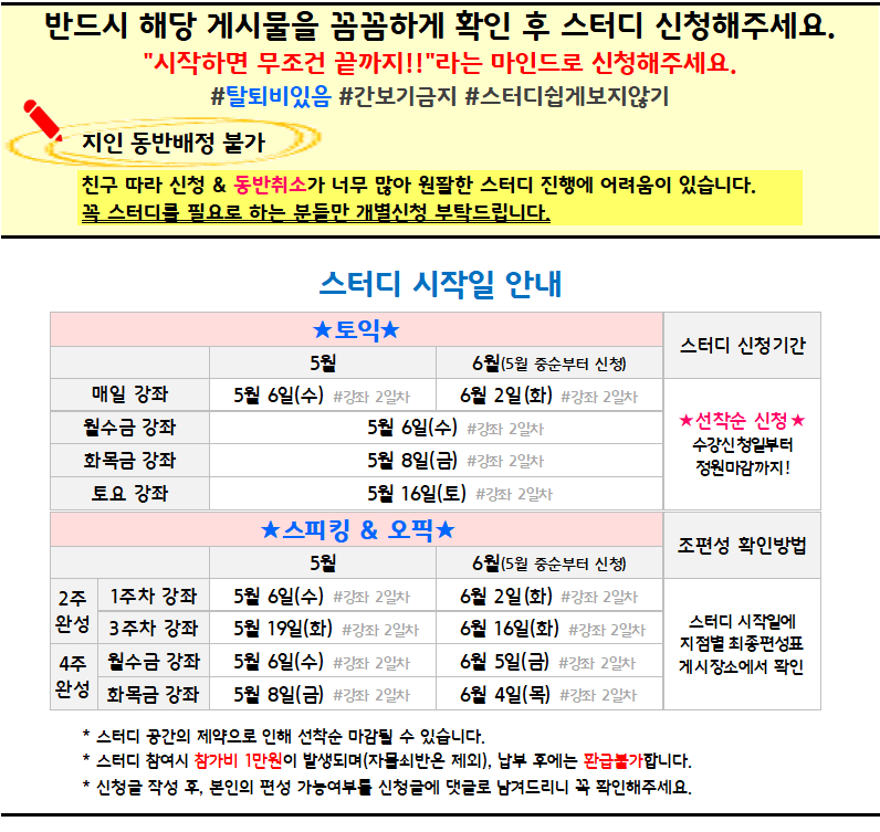 공지사항 청주 5~6월 스터디안내
