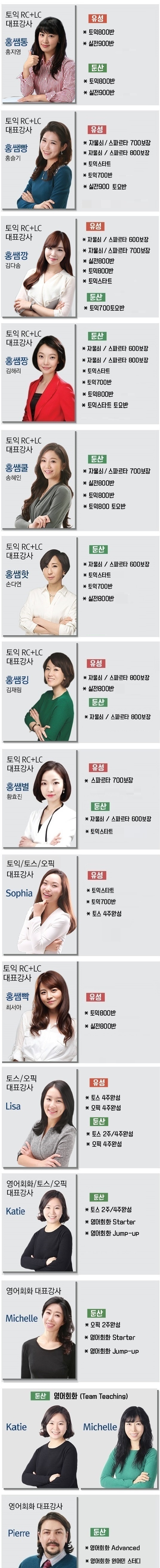 강사별 과목 안내