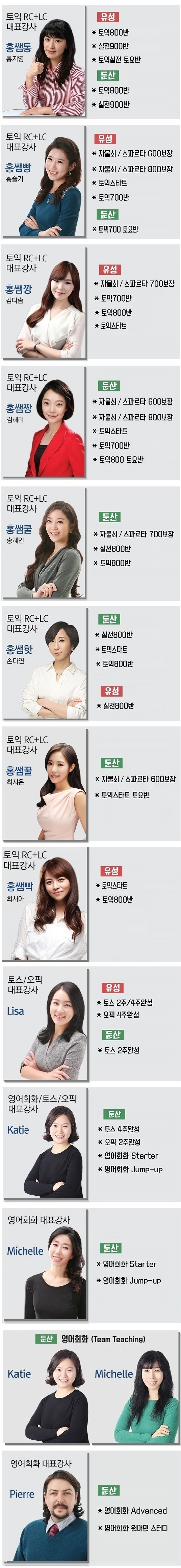 강사별 과목 안내