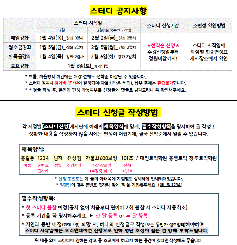 [둔산점] 토익 정규강좌_월수금 or 화목금 ★금요일 격주★ | ||||||