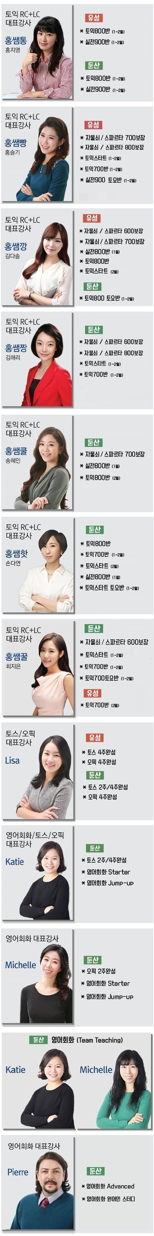 강사별 과목 안내