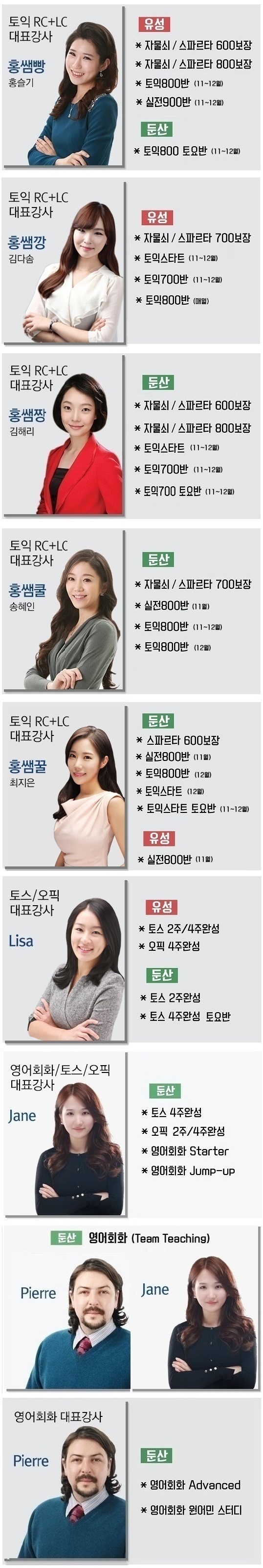 강사별 과목 안내
