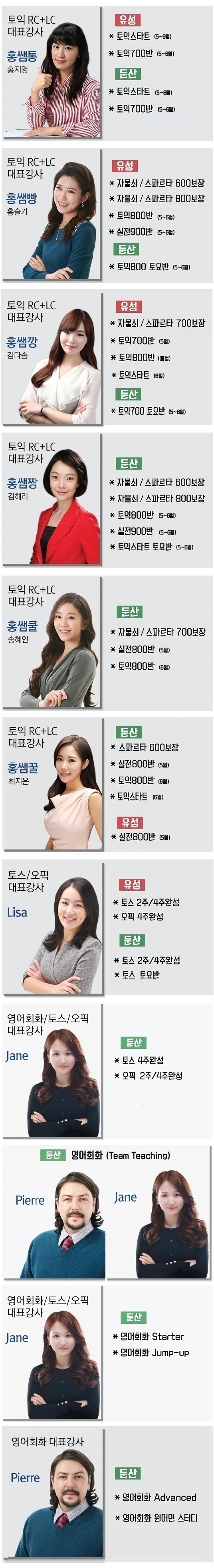 강사별 과목 안내