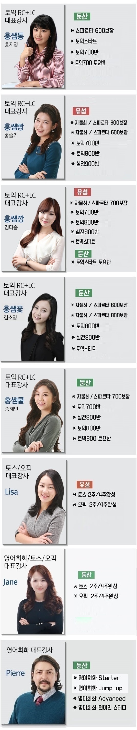 강사별 과목 안내