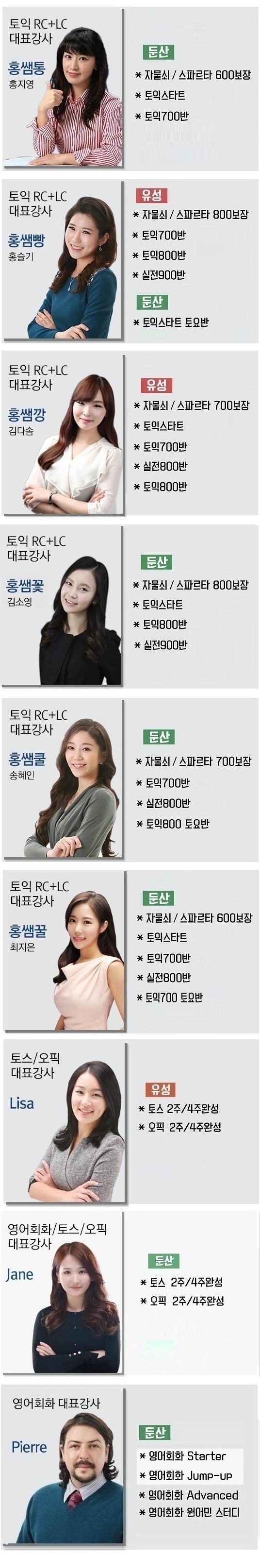 강사별 과목 안내