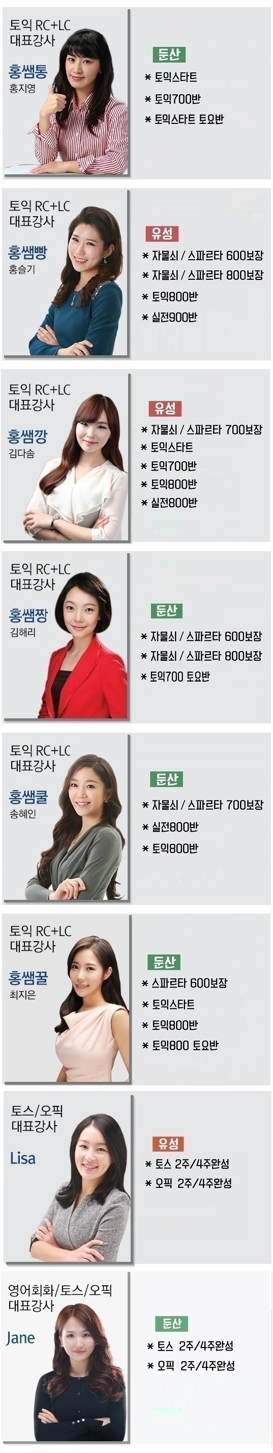 강사별 과목 안내