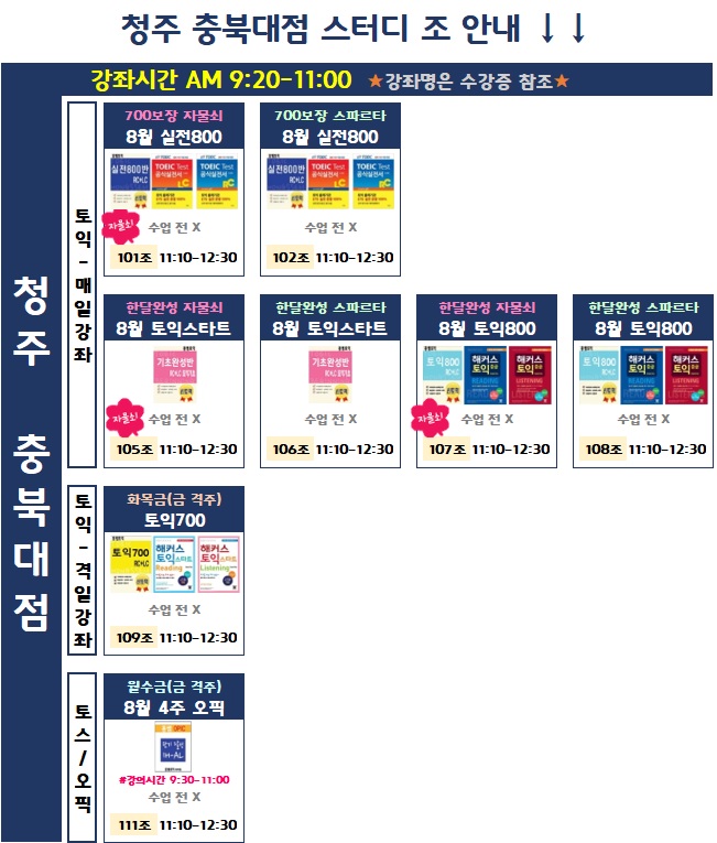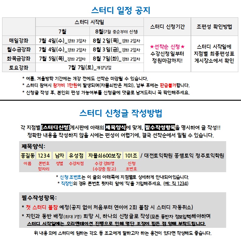 청주 8월 스터디 신청안내